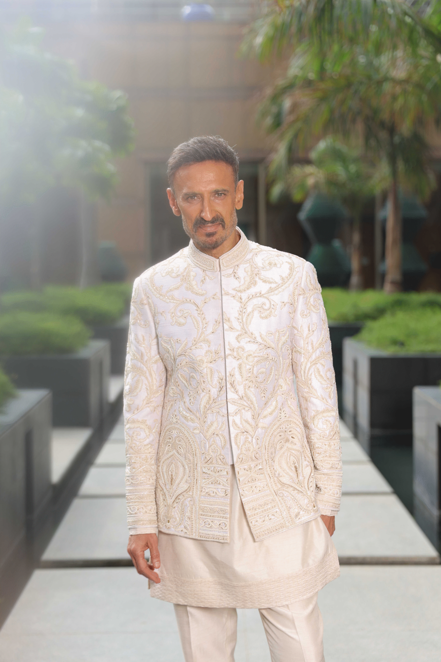 Pearl Silk Hand Embroidered Bandhgala Set